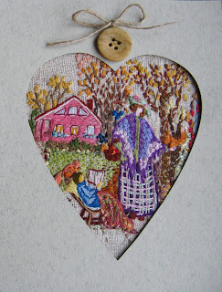 Вышила быстро, а с оформлением "села". Примеряла та и эдак, меняла паспарту, но размер открыточный, а сюжет "картинный". Единственным выходом было резать, резать и резать. Потому как открытка должна быть открыткой и пришлось пожертвовать деталями. Об этом не жалею, композиция стала лаконичнее, подчеркивая сюжет.